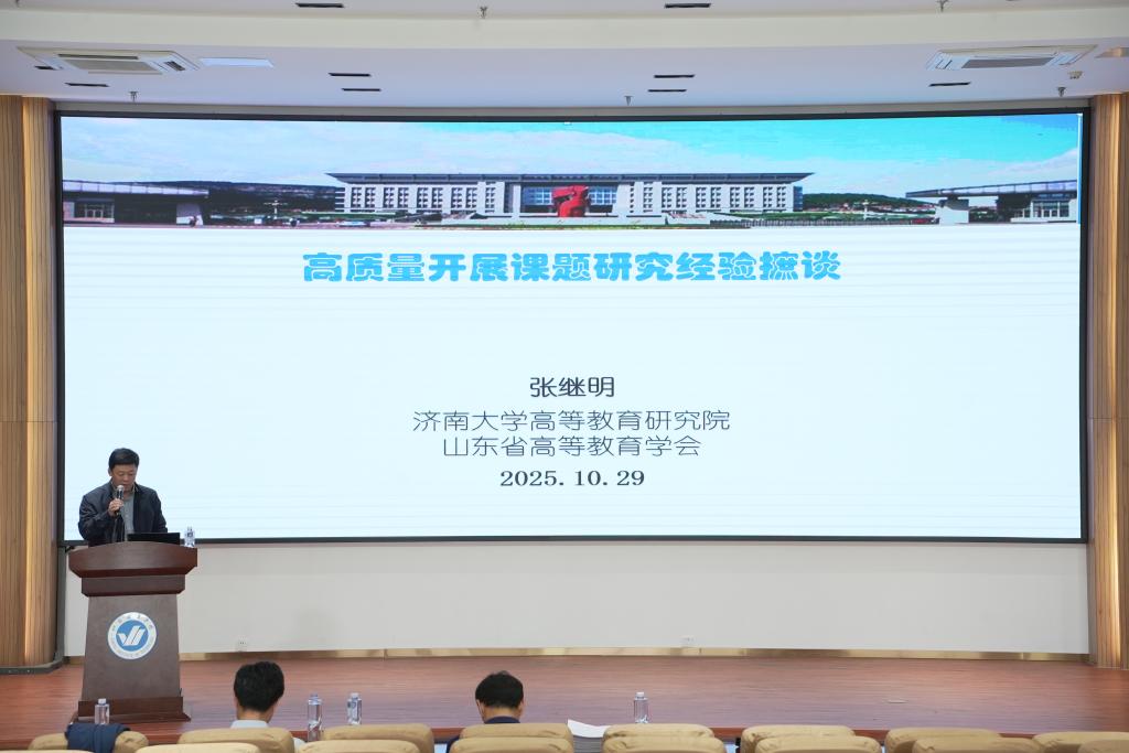 评审会后,张继明教授结合自身课题申报与评审经历,主讲了院校研究专家报告,既分享了规避院校研究“雷区”的实用技巧,又激励青年教师要保持科研热忱,注重跨学科积累与团队协作。张教授分享了许多实用技巧和宝贵经验,通过丰富的案例,详细讲解了如何做好院校研究课题,为如何做好院校研究课题理清了思路,找准了方向。